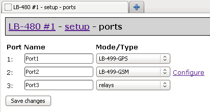 Konfiguracja portów dostępna jest przez WWW (strona główna → setup → ports) i lbx (menu urządzenia → konfiguracja → porty).