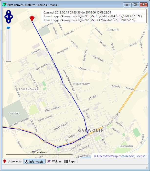 • wizualizacji w postaci wykresów, tabel, raportów i map z trasą przejazdu.