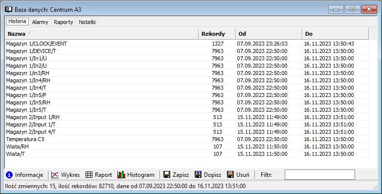 - z okna bazy danych klikając na zakładce 'Historia' przycisk 'Raport'