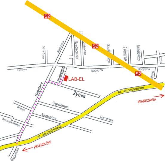 Dojazd do LAB-EL z Warszawy i Pruszkowa | mapa dojazdowa
