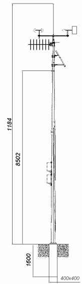MK-12 - Maszt kratownicowy, z odciągami, o wysokości od 8 m (MK-08) do 16 m (MK-16), (Rys 2a, b, c), z wyposażeniem. Konstrukcja tego masztu do stacji meteo składa się z 3 (ilość zależy od wysokości masztu) odcinków lekkich konstrukcji kratownicowych po 4 m każdy. Niska waga i konstrukcja umożliwiają łatwy transport (nawet na bagażniku samochodu osobowego) i łatwy montaż bez potrzeby angażowania ciężkiego sprzętu budowlanego. Maszt jest wyposażony w elementy umożliwiające podłączenie go do instalacji odgromowej i odciągi stabilizujące. Elementem podstawy jest przegub umożliwiający elastyczną pracę masztu a także jego położenie. Posadowienie masztu wymaga przygotowania przez inwestora fundamentu pod sam maszt i odciągi wg przekazanych założeń. Na maszcie można umieścić stację meteorologiczną w oparciu np. o LB-741 i współpracujących z nią miernik pomiarowych takie jak: termohigrometr LB-710R, termometr LB-710T, barometr LB-716, miernik wiatru LB-746 oraz deszczomierz ARG100 i inne.